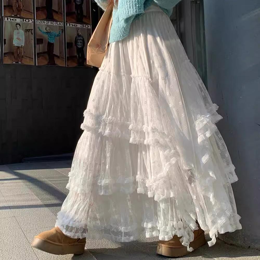 DIMANAF 2025 Frühling Frauen Neue Röcke Vintage Lose Elastische Gefaltete Elegante Weiße Lange Röcke