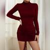 Neues Herbst- und Winter Damen Mid-Year High-Neck Langarm Kordelzug Hüftrock Sexy Kleid