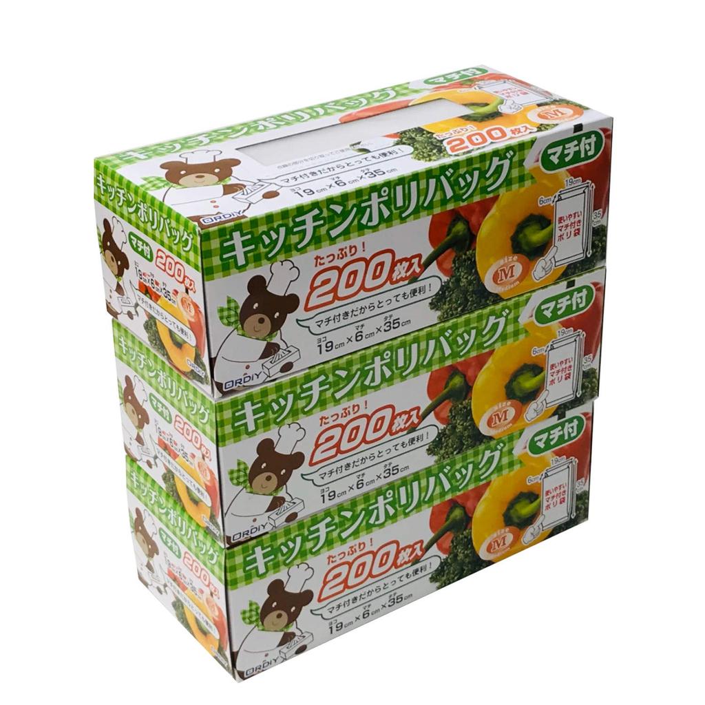 Oldi Küchenplastik-Lebensmittelaufbewahrung 200er Set mit Höhe 35 x Breite 19 x Bodenfalzbreite Dicke Beutel, Beutel, Transluzent, Stück, 3,