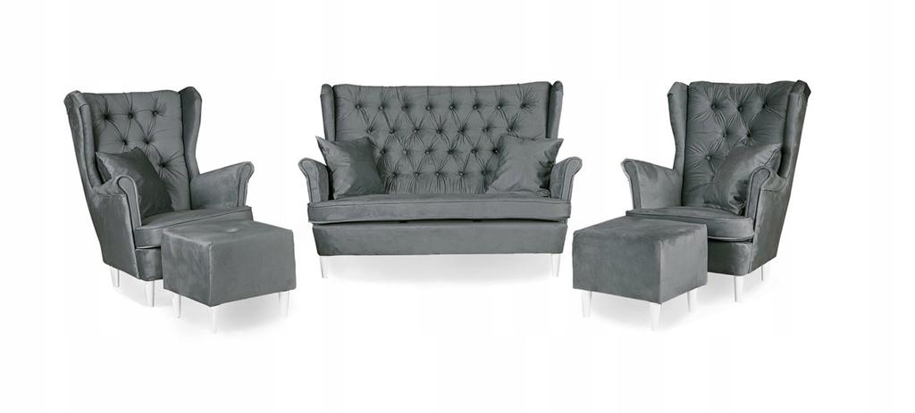 Zestaw wypoczynkowy mebli uszak Gaja sofa fotele pufy Family Meble komplet
