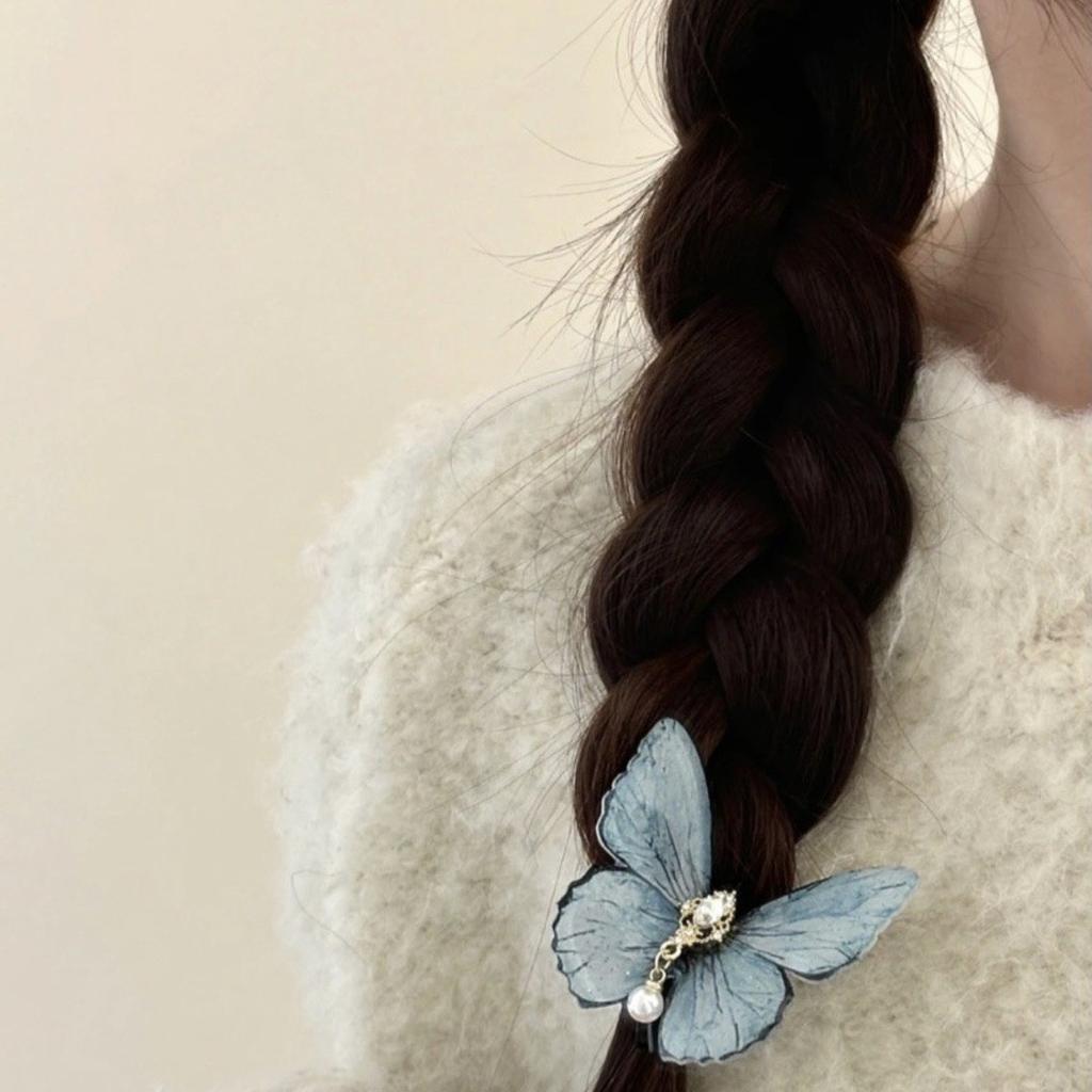Year Super Fairy Ice Blue Butterfly Tassel Hairpin Female Mori Girl Bangs Side Duckbill Clip Hairpin