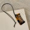 Nische Leopardenmuster Essigsäure Kamm Anhänger Schwarze Kordelkette Damen Einzigartiger Design-Sinn Vielseitige Halskette Pulloverkette