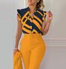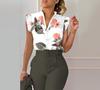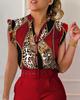 2023 Sommer Damen V-Ausschnitt Knopfleiste Blütenblatt Ärmel Bedrucktes Hemd