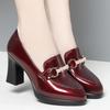 Women's Deep-Cut Pointed High Heels - 2023 Spring/Autumn, Mid-Heel Red Leather Shoes for Middle-Aged Women
