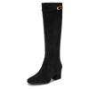 Lange lange schwarze Wildlederstiefel [IK+], Unterkniestiefel, 8555,