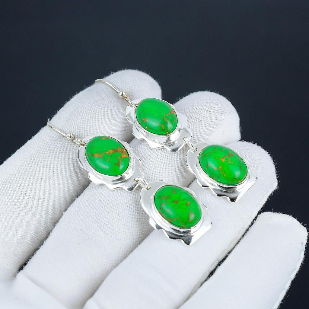 Grüner Türkis Edelstein Hängeohrringe 925 Sterlingsilber Ohrring, Handgefertigter Boho Silber Schmuck Hängeohrringe, Verlobungsgeschenk