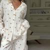 Baumwolle Pyjamas mit Liebesdruck für Damen, einreihig, mit Tasche, Neu in der Damennachtwäsche 2025, Frühling/Herbst, Revers, lange Ärmel, Damenkleidung