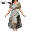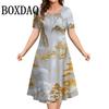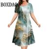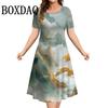 Marble Landscape 3D Printed Women's Clothing Summer Short Sleeve Elegant Party Dresses O-Neck Casual Painting Loose A-Line Dress