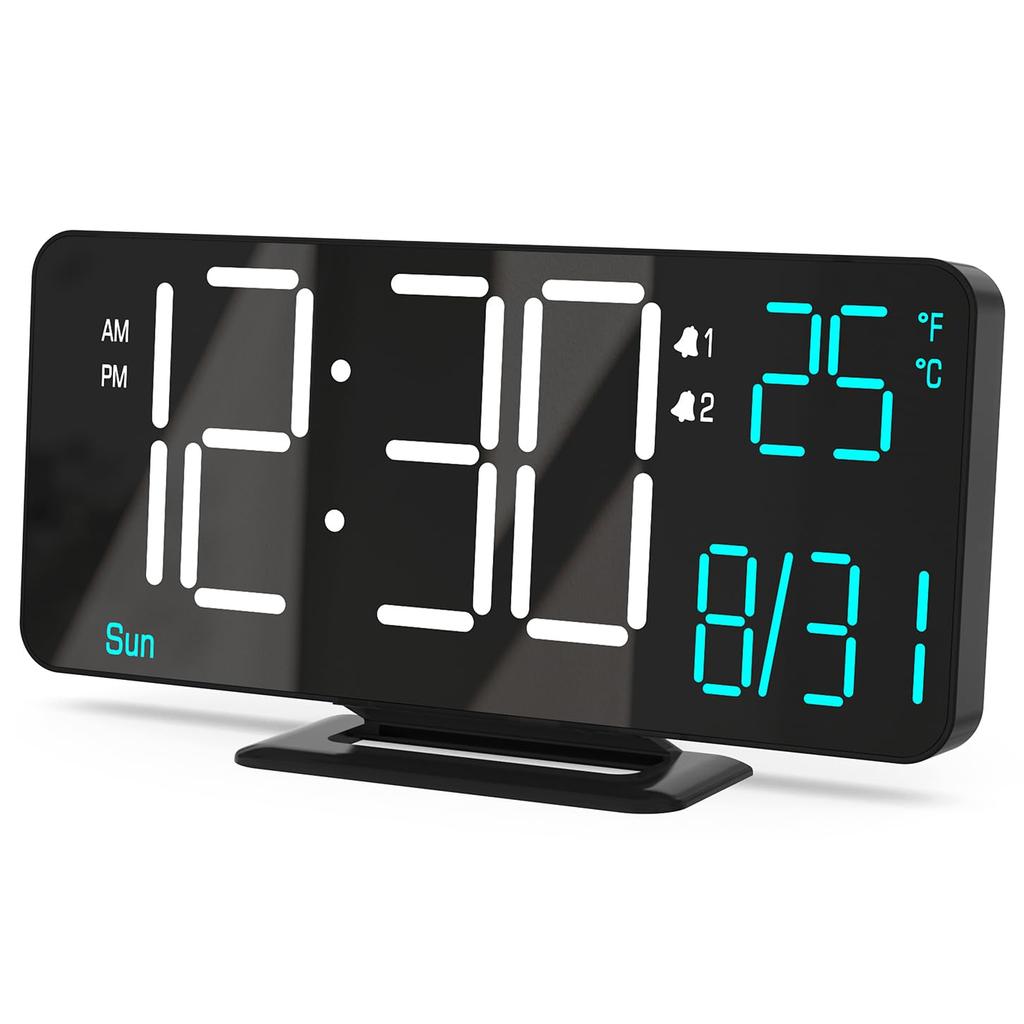 KOSUMOSU Wecker LED-Uhr für Schlafzimmer Zoll Schwarz Digitaluhr Uhr Dual Alarm der Woche Uhr mit Kalender Schreibtischuhr für Wohnzimmer 6,7
