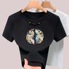 Neues chinesisches Kurzarm-T-Shirt für Damen, neues besticktes T-Shirt mit Rundhalsausschnitt, leichtes chinesisches Design, chinesische Elemente, verbessertes Oberteil