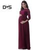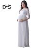 Kleid für Schwangere, Spitze, ausgehöhlt, Blumenstickerei, Rundhalsausschnitt, lange Ärmel, plissiertes Maxikleid für Hochzeit, Party, Abschlussball, Foto-Requisite