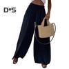 Damenhose, Übergröße, weites Bein, elastische Taille, Freizeithose, lockere Passform, einfarbig, dünne lange Hose für den Alltag
