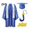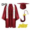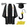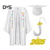 Kinder-Kindergarten-Abschlussuniform mit Quastenhut und Schal, V-Ausschnitt, knielang, lange Ärmel, Reißverschluss, Grundschul-Abschlussrobe für Kinder