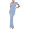 Damen Rundhals lässig elegante Kurzarm enge lange Kleider
