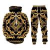 Frühling Herbst Mode Luxus Goldene Muster Sweatshirt 3D Druck Mit Kapuze Sweatshirt Vergnügen Sportswear Hosen Anzug männer kleidung