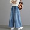 Koreanische Mode Frauen Plus Größe Breite Bein Jeans Hohe Taille Gewaschen Baumwolle Blau Baggy Denim Hosen Beiläufige Lose Vintage Damen jeans