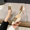 Frühlings-Neue Strass-Schuhe mit quadratischer Schnalle für Damen, vielseitige Satin-High-Heels, Stiletto-Arbeitsschuhe mit flachem Mund