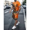 Sommer Herren Hip Hop Stil Bedrucktes Herren Rundhals T-Shirt Shorts Set Modischer Cartoon-Druck Street Casual Alles