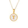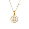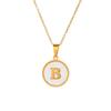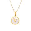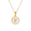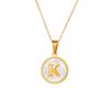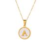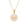 Round Gold Color 26 Letter Necklaces Alphabet Shell Pendant Necklace for Women Men Stainless Steel Chain Jewelry 1PC