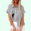 Plus Size Damen Casual Kurzarm Leinen Top Sommer & Herbst Mode Katzendruck Bluse Damen Lose Geknöpftes T-Shirt
