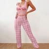 Sommer Damen 2-teiliges Homewear Pyjama Set Weste Color Block Karomuster Hose Oberteil mit Buchstabenprint Damen Pyjamas Homewear Freizeit Set