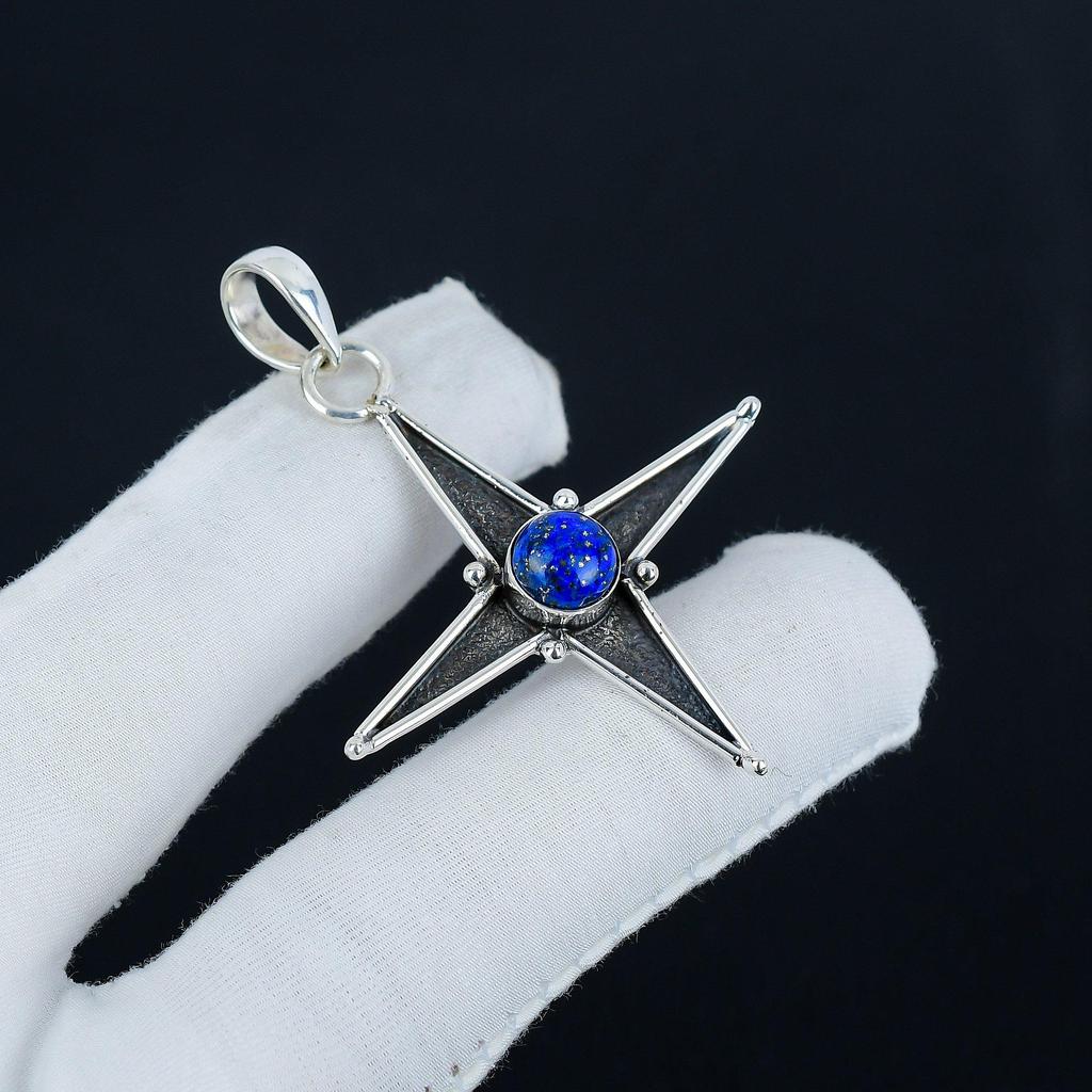 Natürlicher Lapislazuli Edelstein Silberanhänger in 925 Sterlingsilber - Handgefertigtes Sterndesign, Alltagsschmuck, Einzigartiger handwerklicher Designanhänger Geschenk