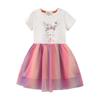 „2024 Neues Sommerkleid für Mädchen mit kurzen Ärmeln und Prinzessinnen-Print aus gestricktem Netzstoff“