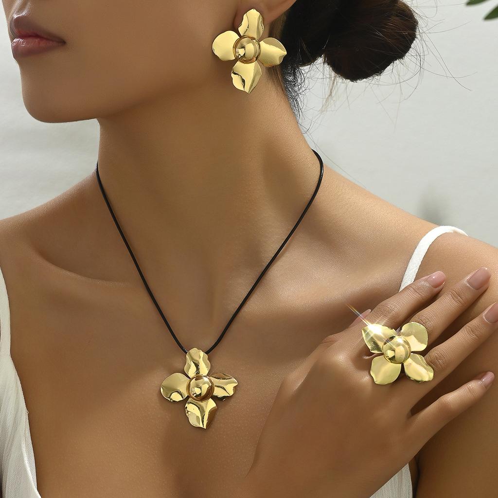 Simple hip-hop style flower earrings ring set personalized 18K gold electroplated long necklace women's jewelry