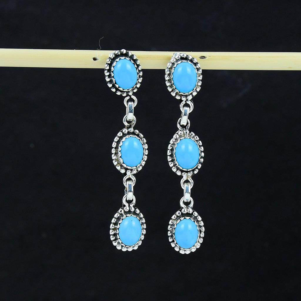 Natürliche Sleeping Beauty Türkis Edelstein Ohrringe, 925 Sterlingsilber Ohrringe, Handgefertigter Boho Silberschmuck Hängeohrringe, Erntedank Geschenk