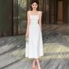 Women's French-Style White Suspender Dress - Summer Cool, Square Neck, Slim Waist, A-Line Long Skirt
