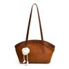 Einfarbige Schultertasche aus Wildlederimitat für Damen, lässige Tasche, großes Fassungsvermögen, Ziernähte, modisch