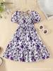 Mädchen Mode Kurzarm Kleid Sommer Kinder Süße Frische Blumen Kleid