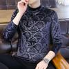 Trendy Gold Velvet Langarm-Sweatshirt für Herren mit mittelhohem Kragen – Dickes, warmes Herbst-/Winter-T-Shirt
