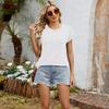 Frühling und Sommer Rundhalsausschnitt Einfarbig Lose Kurzarmoberteile, T-Shirt Damenwesten