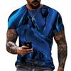 Blau und Schwarz Farbmix und Match 3D-Druck Herren Rundhals T-Shirt Lycra Polyester Stoff Lässige Markenbekleidung Übergroß