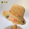 Blumen Hohl Gewebter Strohhut für Damen im Sommer Große Krempe für Fischer, Strandurlaub Sonnenschattenspender und Sonnenschutzhut