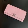 Neue Damenbrieftasche aus echtem Leder mit Palmendruck, langes Design, dreifach gefaltet, modisch, ausgehöhlt, mit Blumenmuster, Perlmutt, farblich blockiert