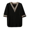 Splicing Hollow Top Sommer Schwarzes Chiffonhemd V-Ausschnitt Kurzarmhemd Damen T-Shirt