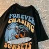 Für immer Sonnenuntergängen hinterherjagen Lustiges Muster Kleidung Männer Lässiges Baumwoll-T-Shirt Lässiger Rundhalsausschnitt Streetwear Harajuku Sommer-T-Shirts Frauen