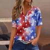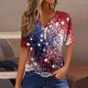 Lässiges T-Shirt für Damen zum Unabhängigkeitstag, bedruckt, V-Ausschnitt, kurzärmlig, mit Knöpfen
