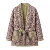 2024 Französischer Retro-Print Baumwollmantel: Europäische & Amerikanische Mode, Mit Gürtel, Locker geschnitten, Langärmelige Damenbekleidung