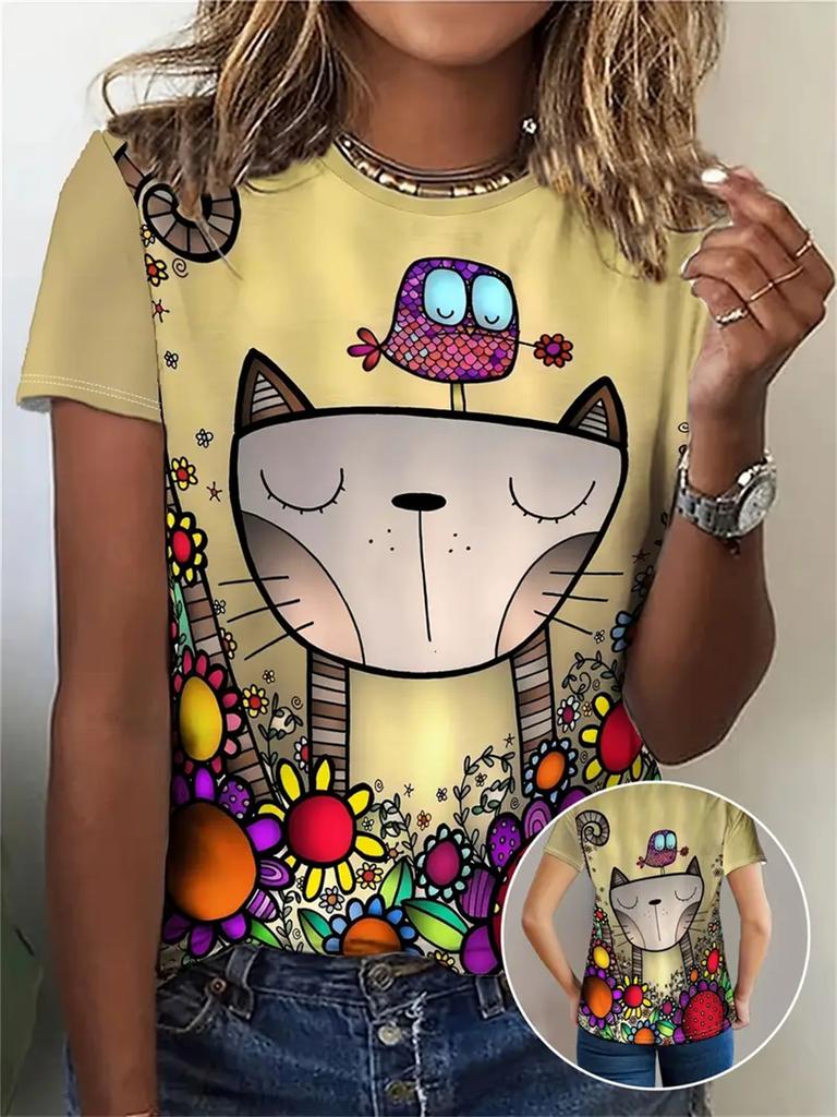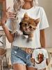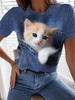2025 Damen T-Shirt Lässig Mode Kurzarm Neu Lustig Cartoon Tier Katze 3D Druck T-Shirt Für Damen Tägliches Oberteil