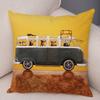 Bunter Kissenbezug mit Cartoon-Fahrbushund und süßem Haustier-Print für Zuhause, Wohnzimmer, Sofa, Auto, Dekoration