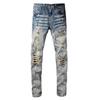 Herren Kristall Löcher Ripped Patchwork Jeans Streetwear Hellblaue Denim Slim Skinny Bleistifthose
