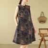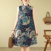 Retro Modifizierter Scheibenknopf Cheongsam Rock Locker Schlankmachendes Ärmelloses Bedrucktes Kleid
