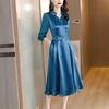 2025 Herbst Einfarbiges Acetat-Satin Langarmkleid - Schlankmachendes & Bauchbedeckendes Design für einen stilvollen Look