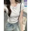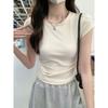 Baumwollhaltiges Kurzarm-T-Shirt Neues Design mit Taillenbetonendem Slimming und Plissiertem Kurzem Westen-Top Einfarbig Hot Girl Rundhals-T-Shirt
