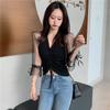V-Ausschnitt Design Koreanische Version Oberteil Damen Sommer Modisch und Sexy Strickpullover mit Kordelzug