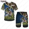 YUHA Angeln Custom 3D Gedruckt Herren Unisex Cool Sommer T-Shirts Kurzarm Freizeit T-Shirts Heiß Zweiteilig