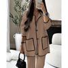 2024 Europäische und amerikanische Herbstmode für Damen, lässig, locker, einfarbig, zweiteiliger Anzug